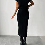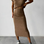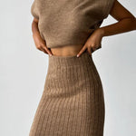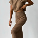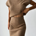 Wejdź do świata komfortu, gdzie ponadczasowa elegancja łączy się z wygodą. Odkryj swój ulubiony zestaw na co dzień: elegancki bezrękawnik i dopasowaną spódnicę dzianinową. To doskonałe połączenie stylu i komfortu!
