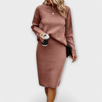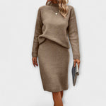 Elegancja w zestawie: komplet w dwóch częściach z golfem i spódnicą