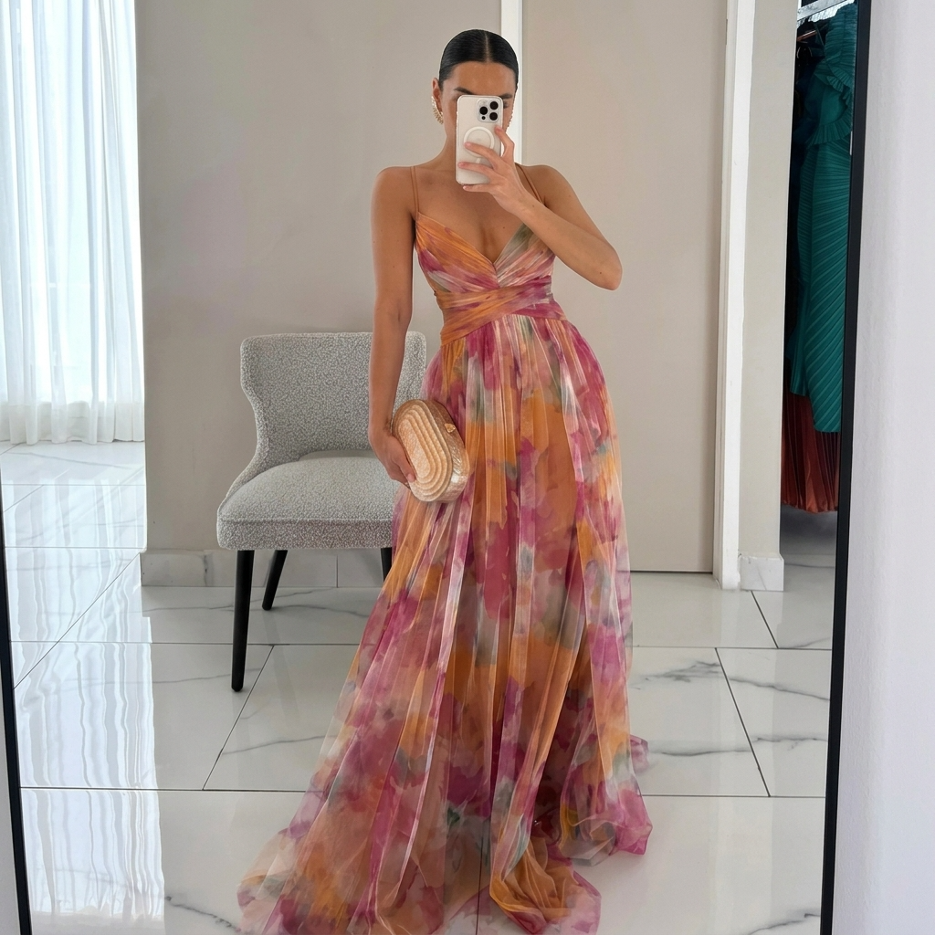 Margarida – Sukienka Maxi z Kwiatowym Wzorem dla Romantycznej Elegancji